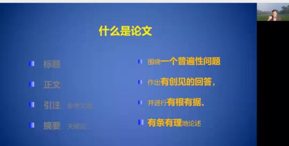 其次从三个方面来展开论文写作需要注重的三件事——选题、论证、表达。在选题上,何教授强调法学生对于法学问题的想象要拓宽眼界,并归纳提出法学问题的三大类型——规范研究、实证研究、对策研究,以及用大量例子回应什么问题算是一个问题、什么是好问题、从哪里找问题。在论证上,何教授强调论证要有交流意识,并归纳了学生不知道如何论证可能的原因,并通过大量的例子说明论证需要从那几个方面展开以及如何查找相关资料。在表达上,何教授归纳了论文各个板块和结构如何清晰、简练的表达;文字表达的技巧,例如多用短句、分段阐述等;论文相关格式问题。