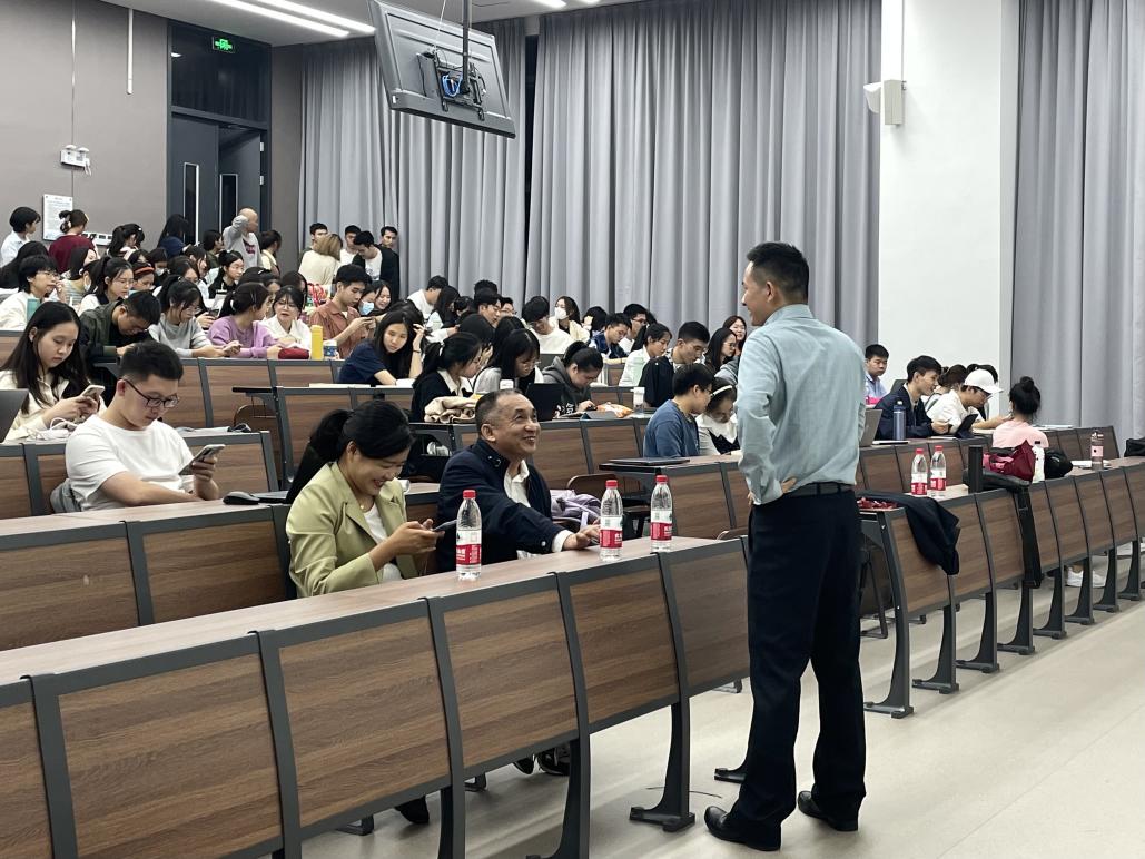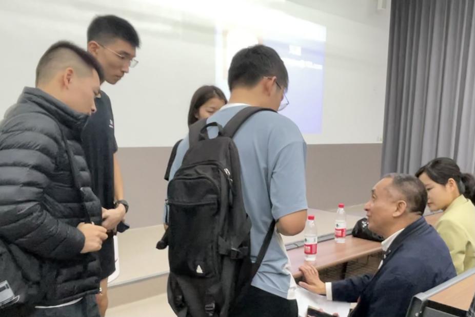 图为讲座结束后同学们与刘颖教授进行热烈讨论