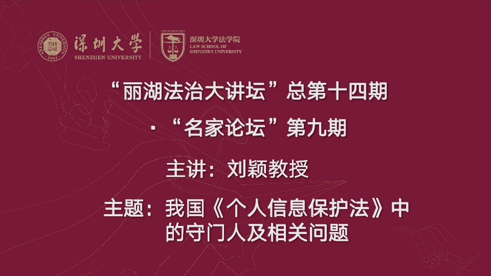 本期论坛由深圳大学访问教授刘颖主讲,为我们分享我国《个人信息保护法》中的守门人及相关法律问题。本期论坛由深圳大学法学院副院长叶海波教授主持,全校多位师生参与其中。