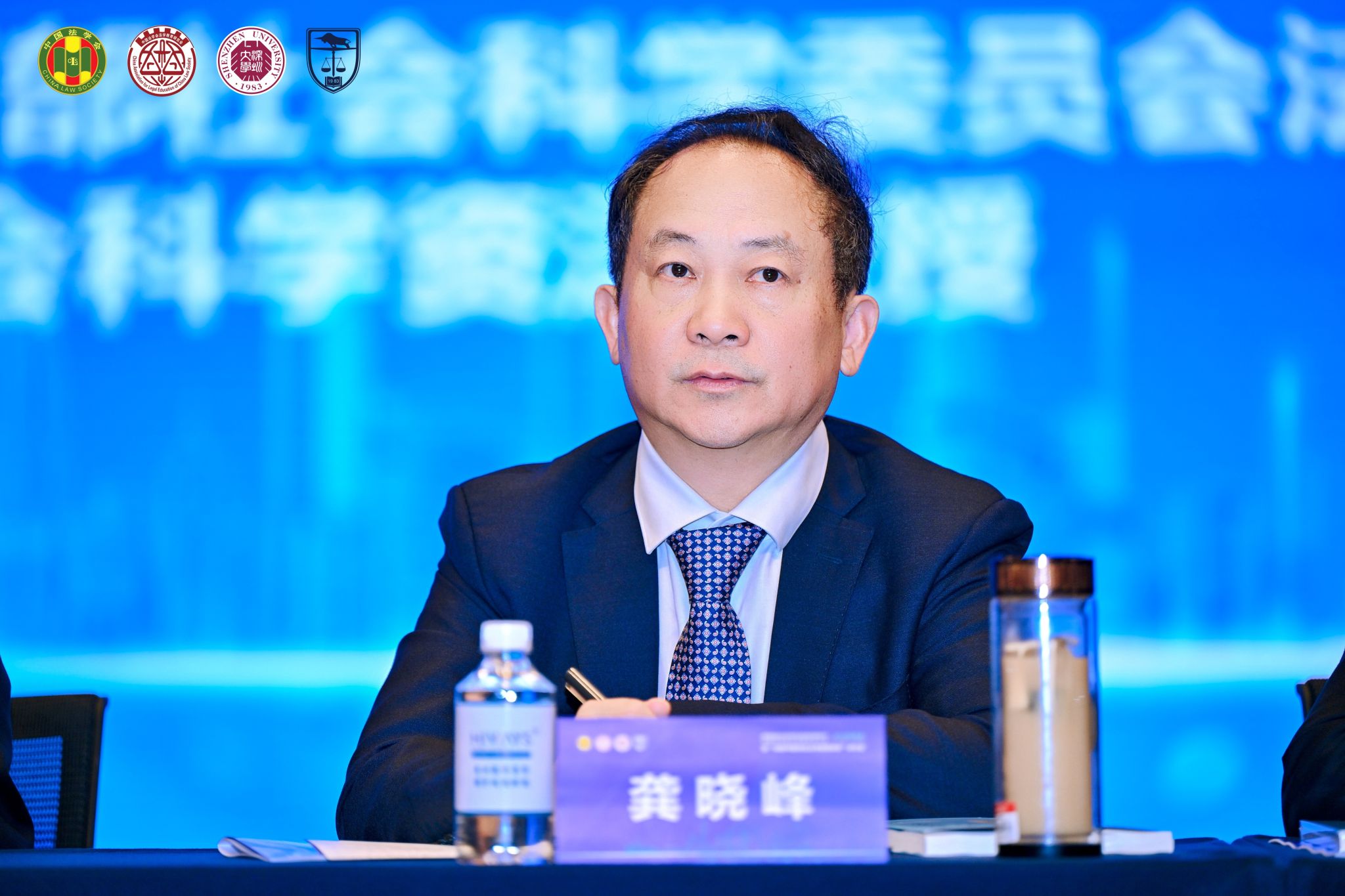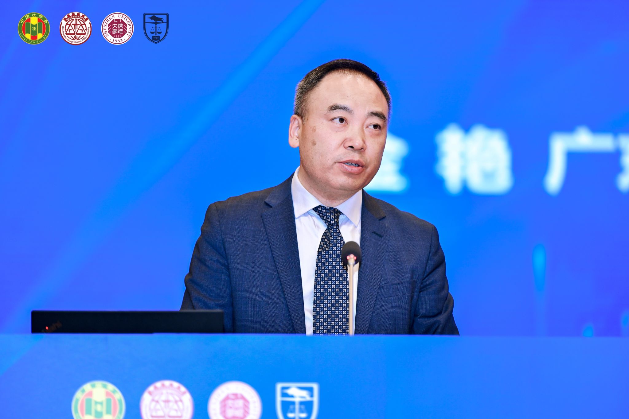 陈振波代表中共深圳市委政法委、深圳市法学会欢迎参会者,并感谢大家对深圳法治建设的关心支持。他指出,本次会议恰逢党的二十届四中全会胜利闭幕的关键时期,法学教育对全面依法治国具有基础性、先导性作用。深圳作为改革开放前沿,正积极推动法治人才培养和法学院校建设,以服务粤港澳大湾区与先行示范区发展,期待与会专家交流经验、凝聚共识,共同促进新时代法学教育高质量发展。