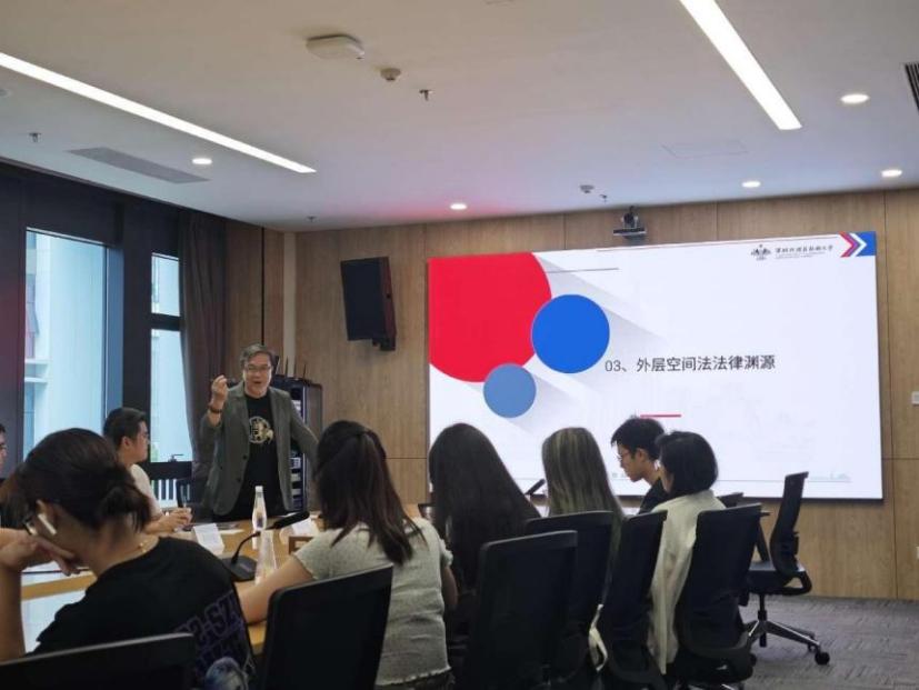 随后,首届“全国十佳”国际空间法学工作者、深圳大学法学院尹玉海教授给与会师生带来了精彩的《外层空间法的十个基本问题》微讲座,介绍了外层空间的定义、现有的国际空间条约、外层空间活动的基本原则以及各国在外层空间方面的立法情况,并就航空航天器的地位、外层空间非军事化、外层空间环境保护、外空人类命运共同体与长期可持续性等一系列问题进行了分享。