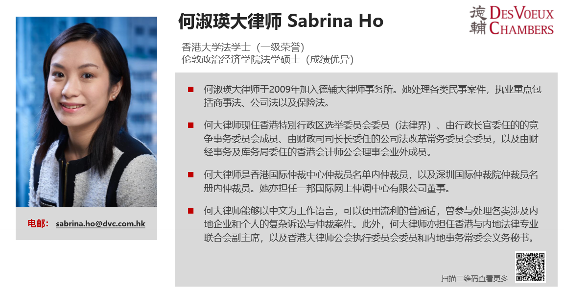何淑瑛大律师于2009年加入德辅大律师事务所,是香港国际仲裁中心仲裁员名单内仲裁员,以及深圳国际仲裁院仲裁员名册内仲裁员。她处理各类民事案件,执业重点包括商事法、公司法以及保险法,曾参与处理各类涉及内地企业和个人的复杂诉讼与仲裁案件。