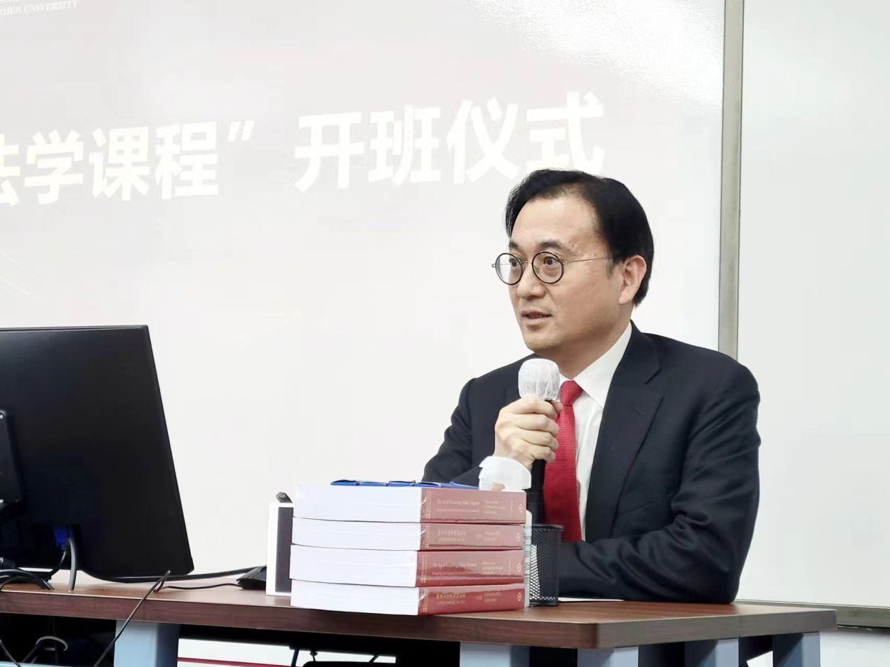 2024年3月2日,香港德辅大律师事务所与深圳大学联合开设 “德辅法学课程”,并在深大丽湖校区举行了开班仪式。“德辅法学课程”是香港德辅大律师事务所为深圳大学与深圳国际仲裁院联合培养的国际仲裁法律硕士项目捐赠的系列公益课程,包括“国际商事仲裁”必修课和其他专题课程。德辅大律师事务所王鸣峰资深大律师、陆栩然大律师、业务拓展总监王惟珍女士,深圳大学法学院院长熊伟、副院长周卫、国际法教研室副主任龙杰、研究生秘书孙桃花、徐芳,以及2023级国际仲裁法律硕士班全体同学出席了本次活动。本次开班仪式由周卫主持。
