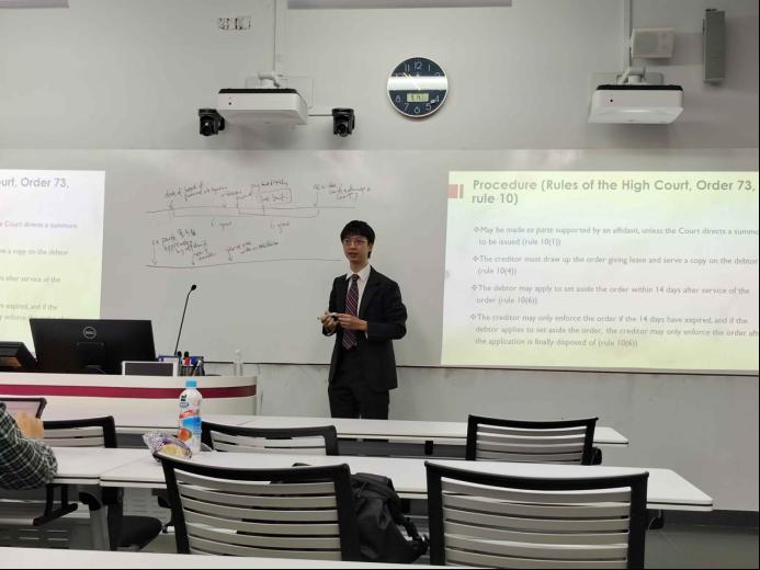 江大律师着重讲解了执行仲裁裁决的方法、普通法地区的诉讼、《仲裁条例》下的简易程序与程序选择以及香港法院执行仲裁裁决的方式等问题,基于《仲裁条例》中关于仲裁裁决执行问题的重点条款,分析了执行仲裁裁决的各种方式的特征与差异,并通过案例与同学们讨论了仲裁裁决在执行环节需要注意的诸多因素。