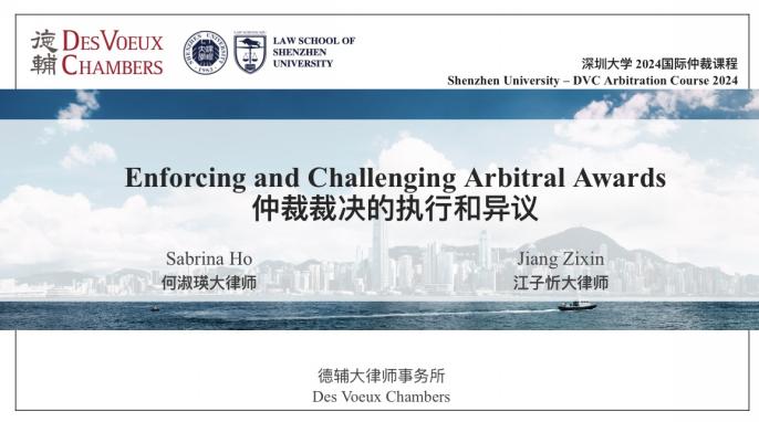 2024年9月14日,香港德辅大律师事务所的何淑瑛大律师(Sabrina Ho)和江子忻大律师(Jiang Zixin)共同为深大法学院国际仲裁法律硕士带来了“德辅法学课程”之“仲裁裁决的执行和异议”。