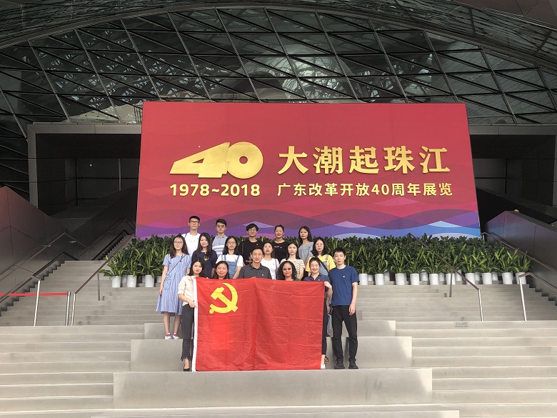 2019年9月27日,在庆祝新中国成立70周年前夕,法学院党委书记李卫英、副书记叶星带领师生党员参观了“大潮起珠江——广东改革开放40周年展览”,重温入党誓词。