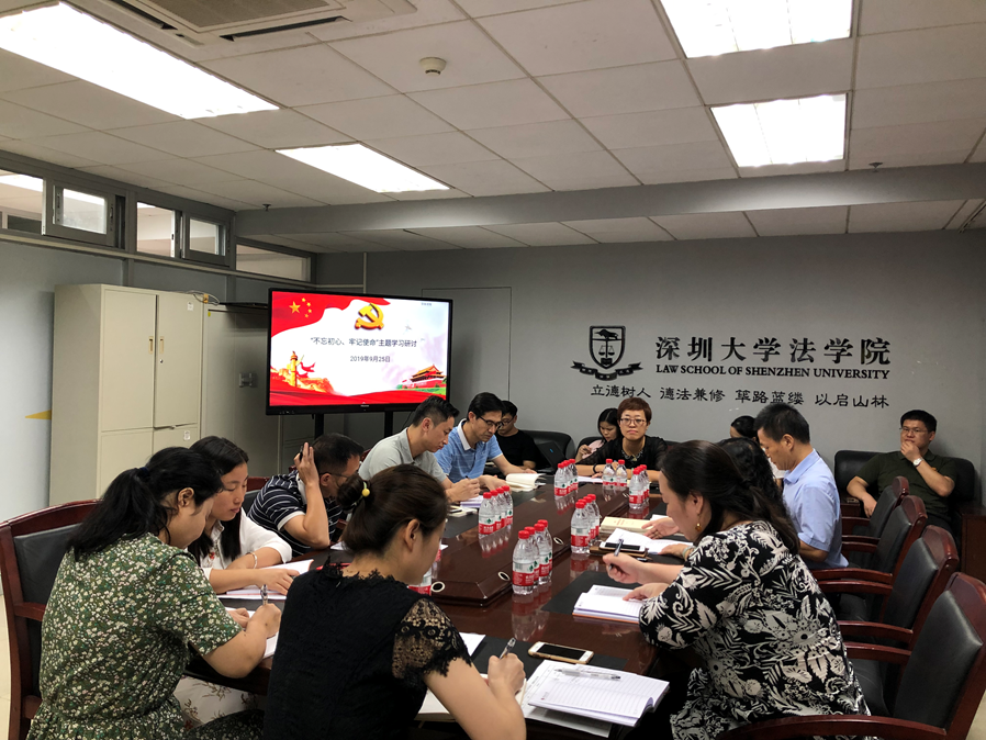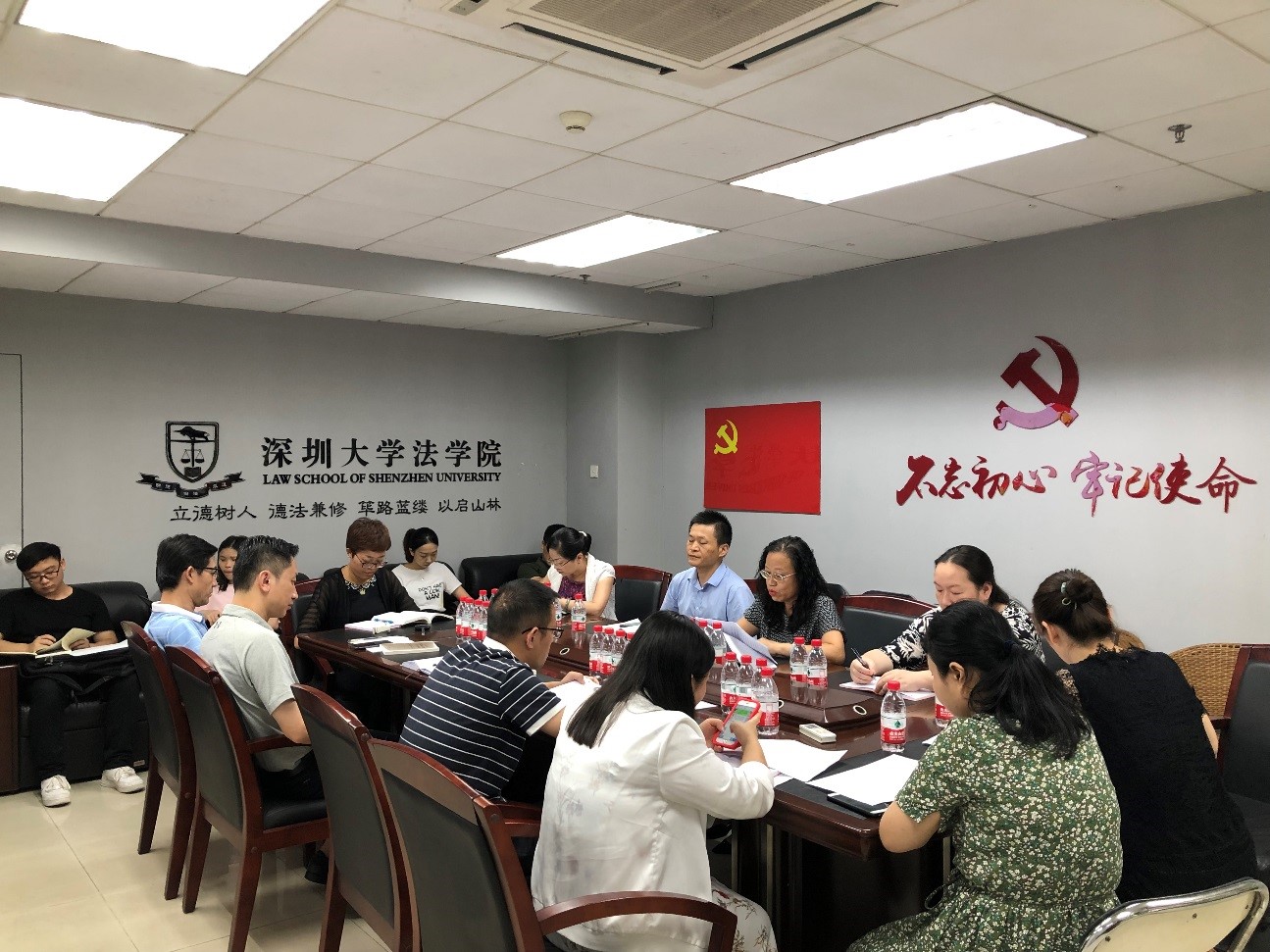 李书记表示,恰逢中华人民共和国成立70周年,在建设粤港澳大湾区和深圳先行示范区的大背景下,法学院党委要继续加强“不忘初心、牢记使命”主题教育工作。李书记就学院党委接下来的主题教育工作进行了安排部署。