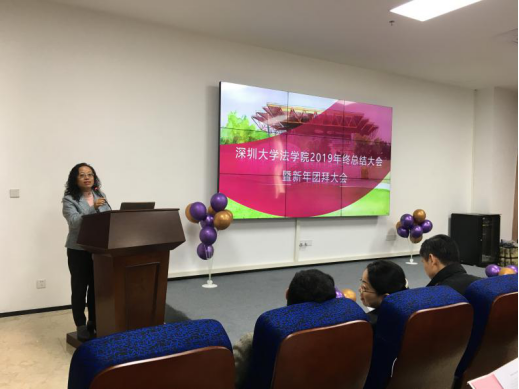 2019年12月27日(周五) 12:30,深圳大学法学院2019年终总结大会暨团拜大会在深圳大学汇文楼(原文科楼)西北谷湖边国学院会议厅成功举行。深圳大学法学院院长叶卫平、深圳大学法学院党委书记李卫英、深圳大学法学院党委副书记叶星、深圳大学法学院副院长侯玲玲、深圳大学法学院副院长吕成龙出席了本次会议。