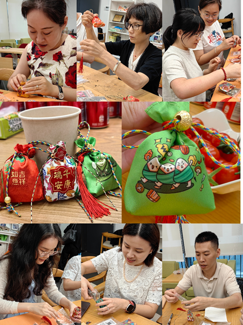 活动现场,老师们热情参与艾草包DIY。艾草作为端午节的传统元素,寓意着驱邪避疫、祈福康健。大家在亲手制作艾草包的过程中感受到了传统文化的魅力。除了艾草包DIY,茶话会还设置了品茶交流环节。在书吧温馨的环境中,大家围坐一堂,畅谈工作与生活,气氛融洽,增进了彼此的了解与友谊。