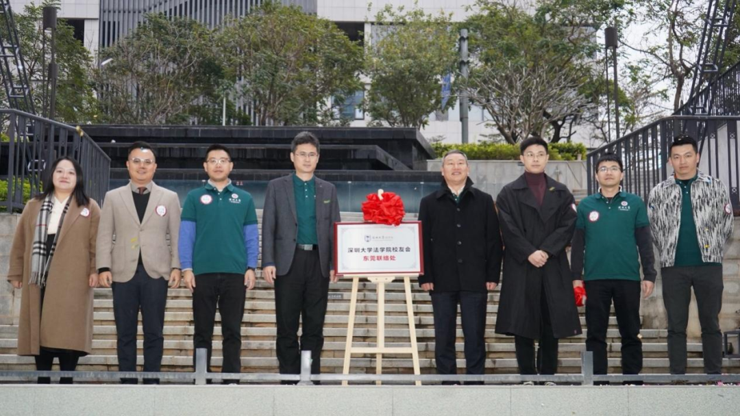 在大家共同见证下,校友会负责人林济霖、刘飙、郭宁华、王勇飞、陈捷奕、林佳霓,以及东莞校友叶志光、蔡鑫生、梁智光等共同为深圳大学法学院东莞联络处揭牌。东莞联络处正式揭牌成立!