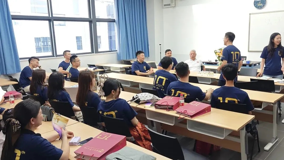 会议结束后,同学们与老师们一同前往四方楼的教室,按班级开温馨班会。同学们和老师讲述着自己十年来的点点滴滴及近况,感慨岁月、展望未来。