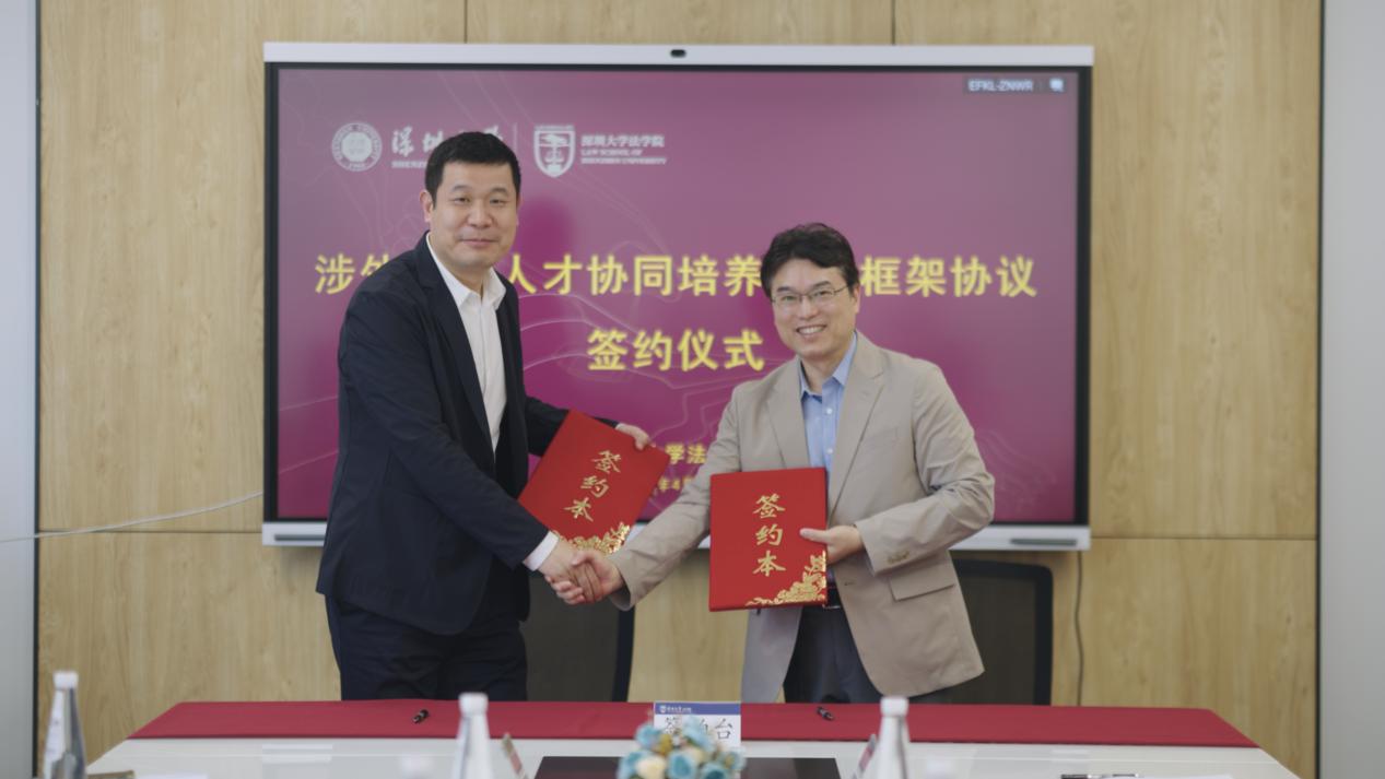 发言环节结束后,王显军、熊伟分别代表福田区司法局、深圳大学法学院签署涉外法治人才协同培养合作框架协议。