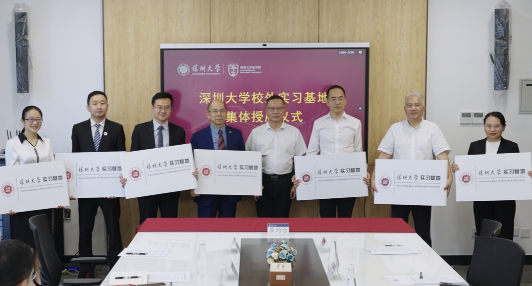 在全体与会人员的见证下,马文泽向福田公证处、香蜜湖街道办、泰和泰(深圳)律师事务所、北京盈科(深圳)律师事务所、广东瀛尊律师事务所、北京中银(深圳)律师事务所、广东卓建律师事务所等单位颁发“深圳大学校外实习基地”牌匾。