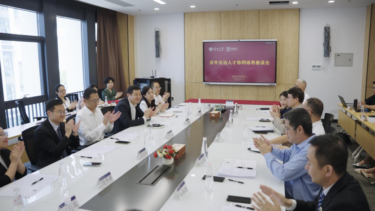 签约与授牌仪式结束后,与会人员就涉外法治人才培养展开座谈。