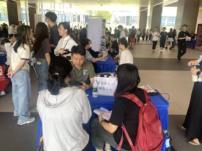 招聘会现场还设有就业和职业规划咨询、简历指导和征兵宣传等特色专区。各个专区人头攒动,同学们积极咨询,对征兵政策、简历修改和职业规划有了进一步的了解,认识到自己的优势和不足,有利于进一步提升自身的职业素养和技能水平,同时也获得了一定的面试技巧。