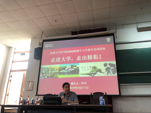 接下来,法学院党委叶星副书记以“走进大学,走出精彩”为主题进行发言。叶书记结合深圳和本校近几年的发展实际,强调在高速发展的同时,学校更加重视学生培养质量,而同学们则要充分利用好学校的资源,充实自己。对此,叶书记引导同学们走出几个误区,警告同学们并不是所有错都可以重来,要对自己的行为加以规制;要重视自己的学业,为自己的就业打好基础;要不断拓宽自己的视野,结交不同专业的同学,敢于去创新;要确立正确的人生观、价值观、世界观……叶书记还提出了其他学习和生活上的建议,希望同学们能够尽快适应大学生活,明确大学四年规划,收获充实的大学生活。