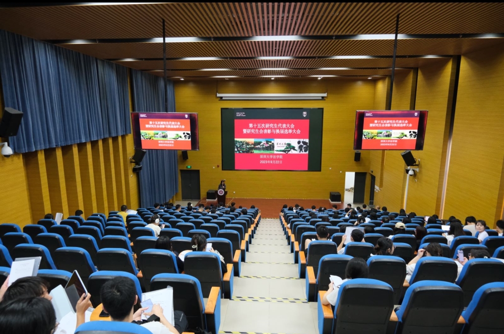 为继续发挥深圳大学法学院研究生会的桥梁纽带作用,更好地为全院研究生同学提供服务,法学院于2023年9月22日19:00-21:30在深圳大学丽湖校区守忠楼一楼报告厅召开了深圳大学法学院第十五届研究生代表大会暨法学院研究生会换届选举大会。出席会议的有深圳大学法学院党委副书记林济霖、法研会指导老师王钜强、研究生辅导员沈小琳、法学院研究生代表、以及来自院校两级学生会的主要学生干部们。大会包括预备会议、致辞、表彰仪式、工作总结及换届换举五个部分。