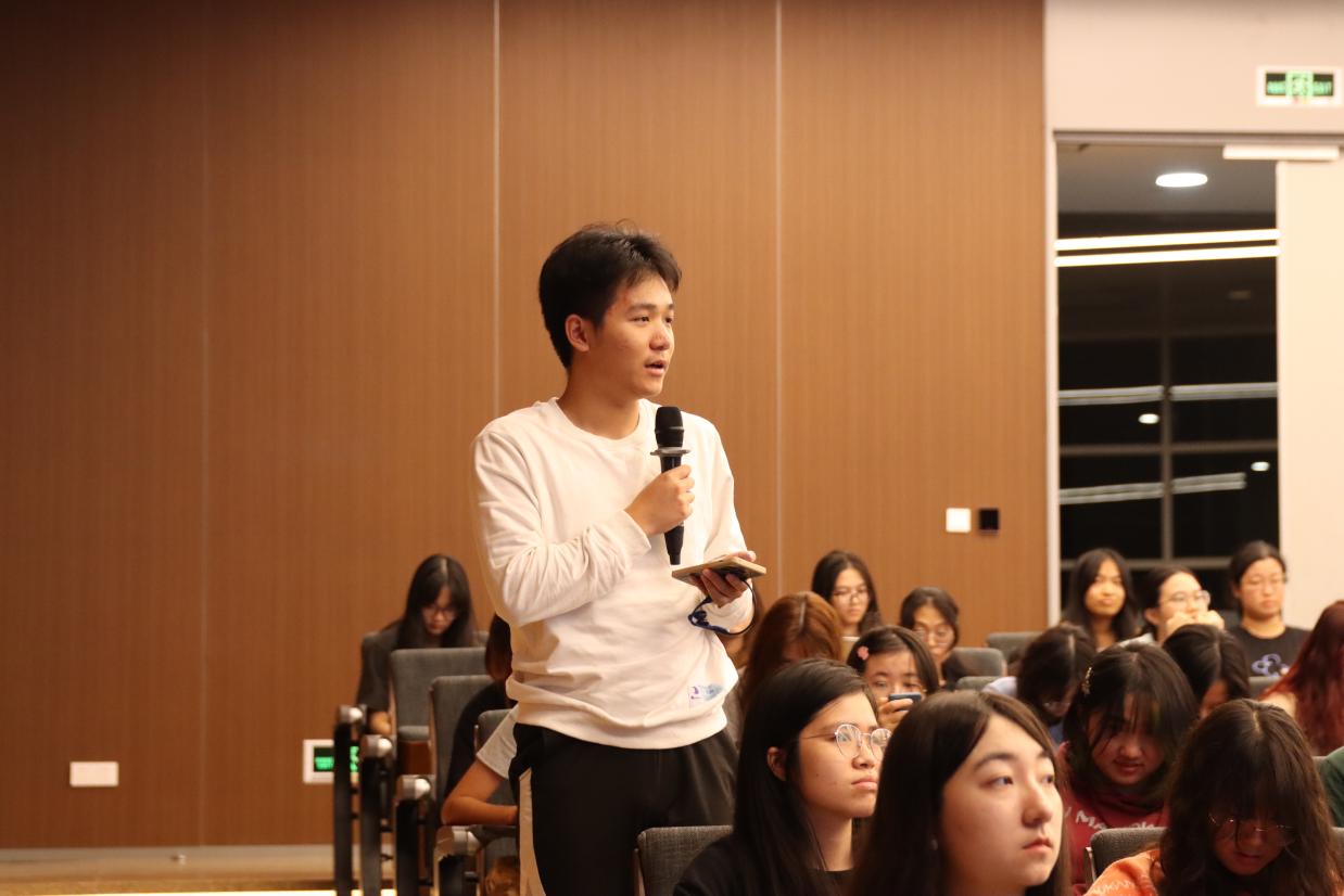 学长学姐的分享结束后,就是提问环节啦!同学们积极提出问题,如:“如何在保持高效的同时,减少内耗”“如何执行计划,提高执行力”学长学姐都耐心地一一解答~