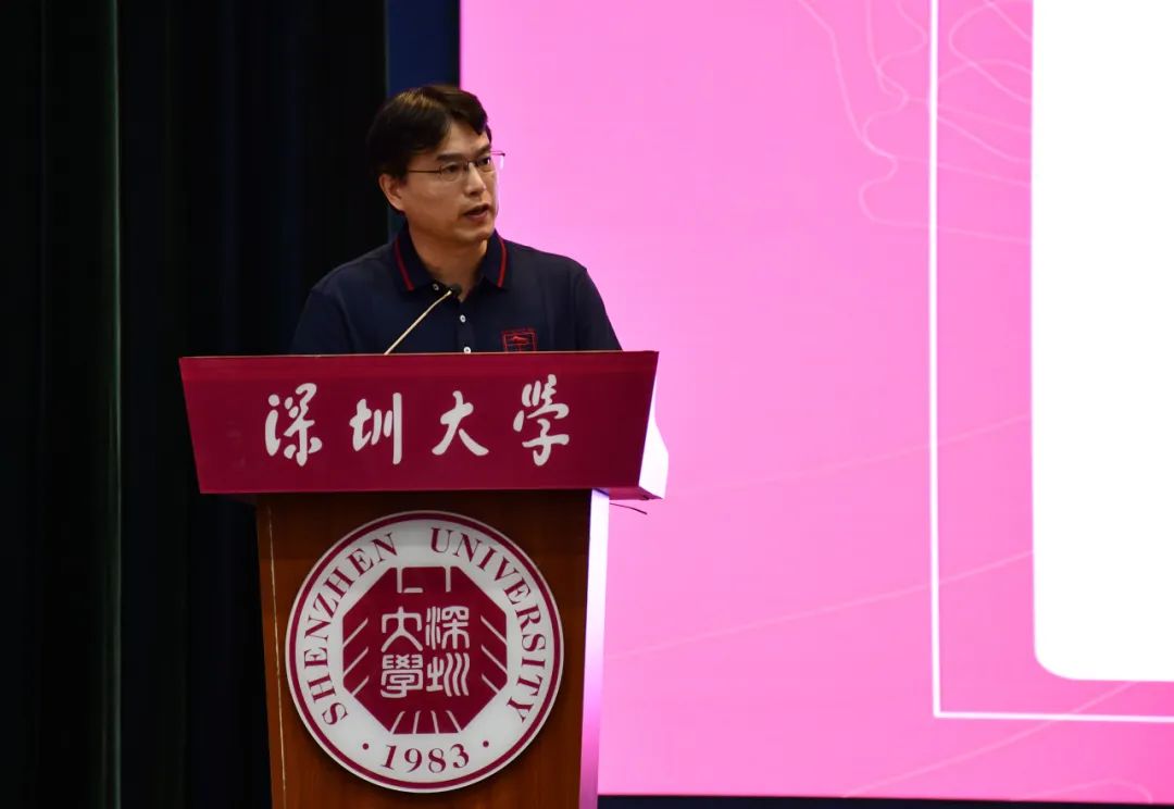 最后,熊伟院长致辞,代表法学院全体教职员工热烈欢迎新同学的到来,对深圳大学法学院2023级新生概况作出了基本陈述,这位谦虚自称与台下同学同为“新生”的院长,还从深圳、深圳大学、深大法学院等三个维度畅谈了学院的发展优势;提出了更加重要的“建设高水平法学院”这一目标,详细说明了为实现目标,学院需要落实“创新求变、国际拓展和科技赋能”的计划;阐释了“法学院如何帮助大家成长和成才”的问题:学院有一批深耕教学一线、深研教改创新、深受学生爱戴的优秀教师;学院以学生为中心,通过对班主任、新生导师、辅导员团队的建设,为学生提供全方位的思想及生活指导。最后,熊伟院长通过对院徽和院训的精彩解读,鼓励同学们勇敢面对学习法学带来的“困难”与“挑战”,呼吁同学们沉下心来,厚积薄发、激情澎湃,与老师们相互成就、彼此为傲!