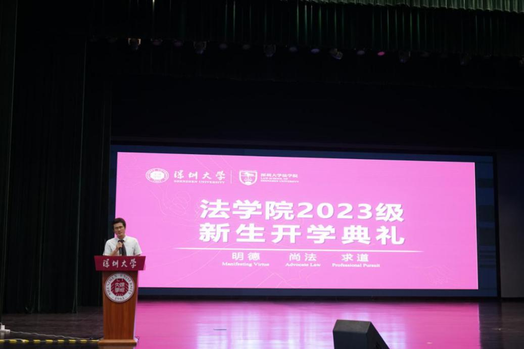 9月11日下午2:00,秋高气爽、暖日斜照,阳台山下、西丽湖畔,在鸟语花香、荔树满坡的美丽校园里,深圳大学法学院在丽湖校区文汇礼堂既隆重又简约地召开2023级新生开学典礼,喜迎研、本共计450名新科青年才俊。