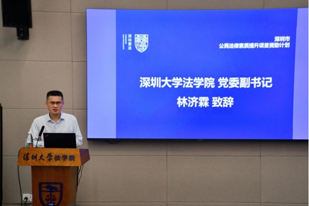 活动开始前,林济霖致辞,感谢市司法局和各位领导、专家一直以来对我院学生活动,尤其是法律志愿服务活动的大力支持,介绍了新时代枫桥经验内涵及其在社区与校园中的表现形式,并指出了调解工作在构建和谐校园中亦有深远影响,推动深圳大学法学院为探索新时代枫桥经验作出探索。