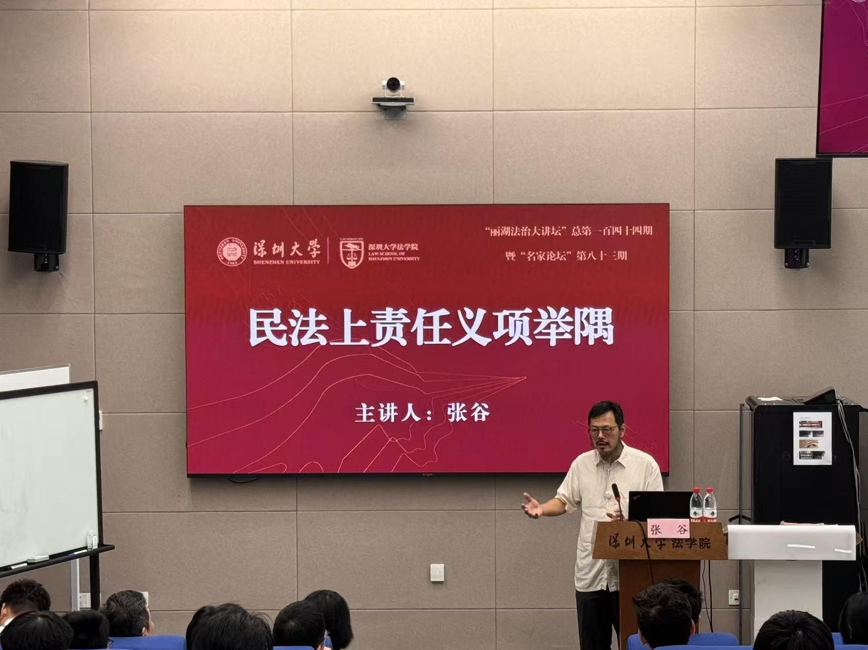 讲座回顾|张谷:民法上责任义项举隅2025年10月16日2025年10月13日下午,由深圳大学法学院主办的“丽湖法治大讲坛”总第一百四十四期暨“名家论坛”第八十三期学术讲座于深圳大学丽湖校区明律楼103顺利举行。浙江大学光华法学院教授、博士生导师张谷受邀以“民法上责任义项举...