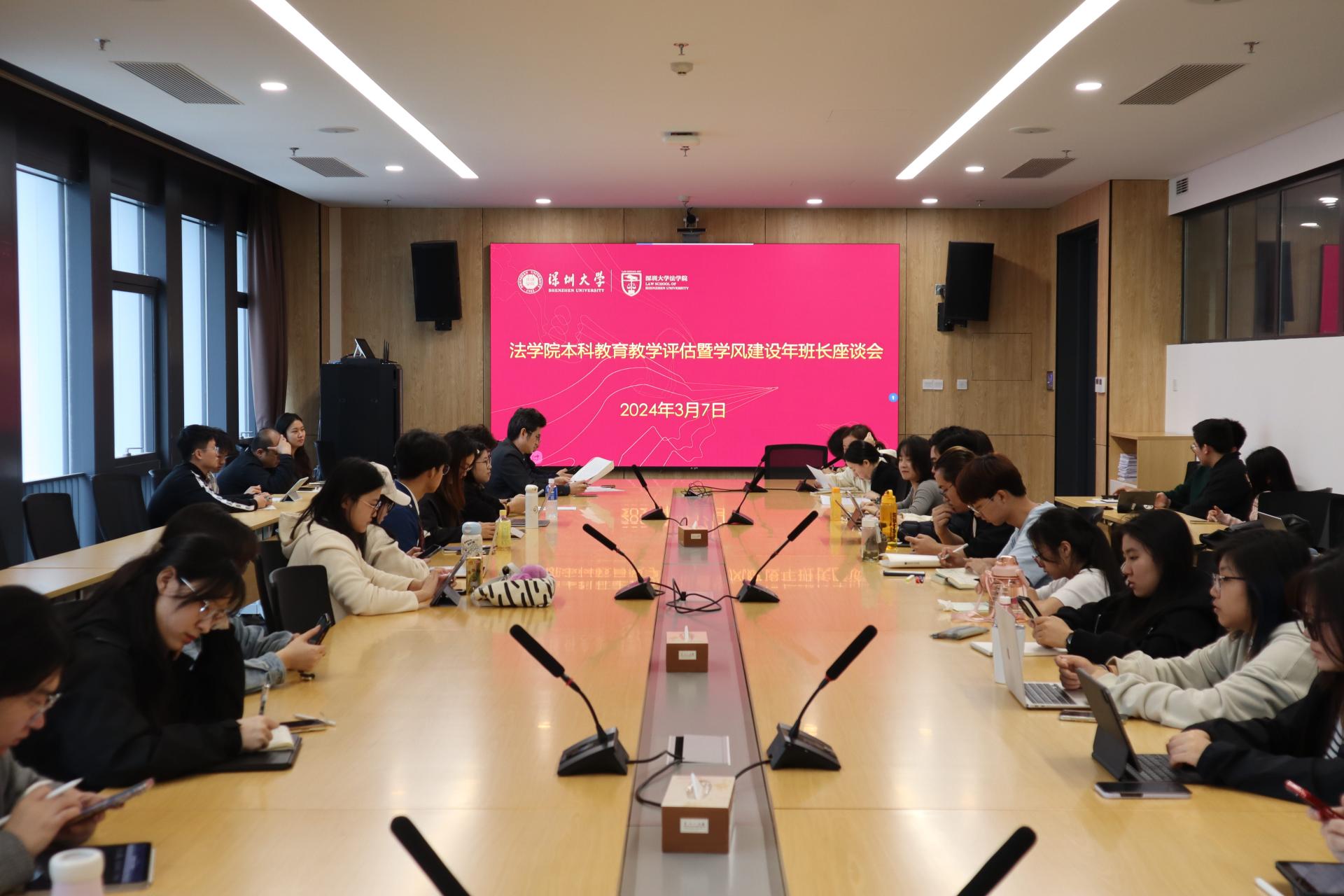 法学院召开本科教育教学评估暨2024学风建设年启动2024年03月12日为介绍和动员即将到来的本科教学评估工作,推进法学院学风建设,3月7日,法学院本科教育教学评估暨2024学风建设年启动班长座谈会在明律楼417会议室召开。本院党委副书记林济霖、各年级辅导员和本、硕各年级班长出席本次座谈... 法学院召开本科教育教学评估暨2024学风建设年启动2024年03月12日为介绍和动员即将到来的本科教学评估工作,推进法学院学风建设,3月7日,法学院本科教育教学评估暨2024学风建设年启动班长座谈会在明律楼417会议室召开。本院党委副书记林济霖、各年级辅导员和本、硕各年级班长出席本次座谈...