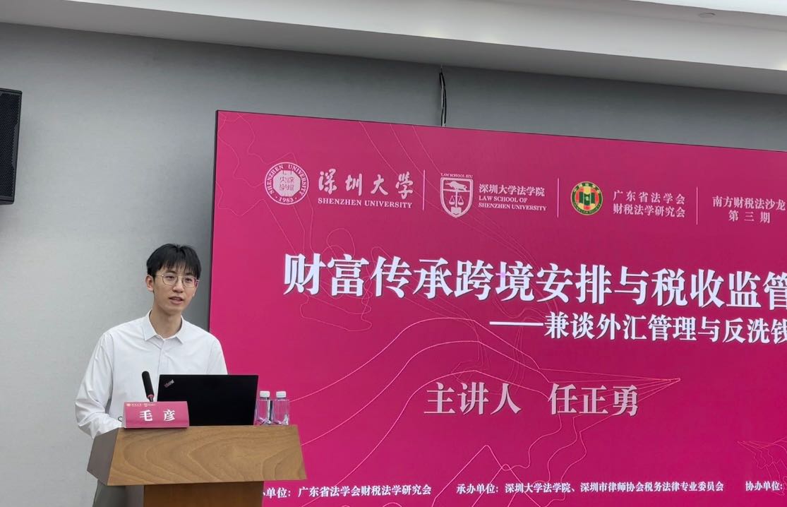 南方财税法沙龙第三期“财富传承跨境安排与税收监管”成功举办2024年03月25日2024年3月23日上午,由广东省法学会财税法学研究会主办,深圳大学法学院、深圳市律师协会税务法律专业委员会承办,税务公社协办的南方财税法沙龙第三期在深圳大学(丽湖校区)守正楼A213成功举行。此次沙龙邀请深圳市律师协... 南方财税法沙龙第三期“财富传承跨境安排与税收监管”成功举办2024年03月25日2024年3月23日上午,由广东省法学会财税法学研究会主办,深圳大学法学院、深圳市律师协会税务法律专业委员会承办,税务公社协办的南方财税法沙龙第三期在深圳大学(丽湖校区)守正楼A213成功举行。此次沙龙邀请深圳市律师协...