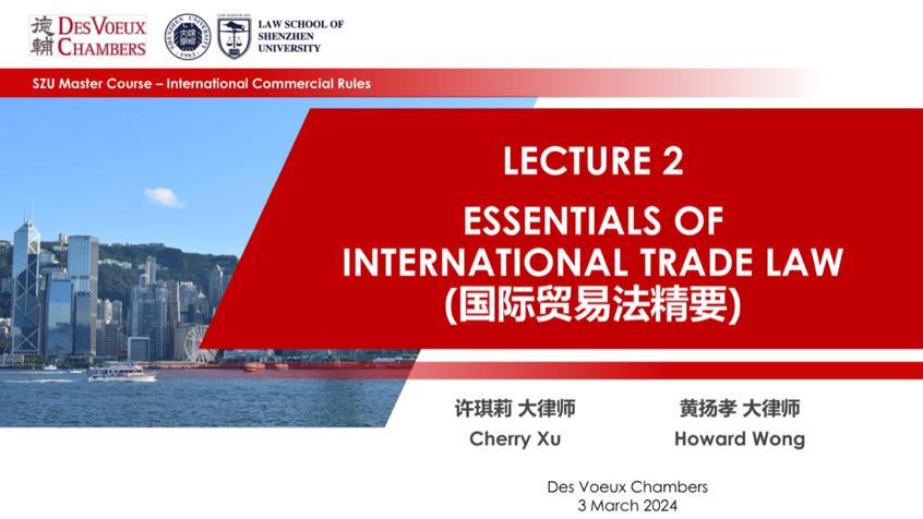 “德辅法学课程”系列之第二讲:国际贸易法精要2024年03月28日“德辅法学课程”是香港德辅大律师事务所为深圳大学与深圳国际仲裁院联合培养的国际仲裁法律硕士项目捐赠的系列公益课程,包括“国际商事规则”必修课和其他专题课程。该课程汇聚了香港德辅大律师事务所的精英力量,为深圳... “德辅法学课程”系列之第二讲:国际贸易法精要2024年03月28日“德辅法学课程”是香港德辅大律师事务所为深圳大学与深圳国际仲裁院联合培养的国际仲裁法律硕士项目捐赠的系列公益课程,包括“国际商事规则”必修课和其他专题课程。该课程汇聚了香港德辅大律师事务所的精英力量,为深圳...