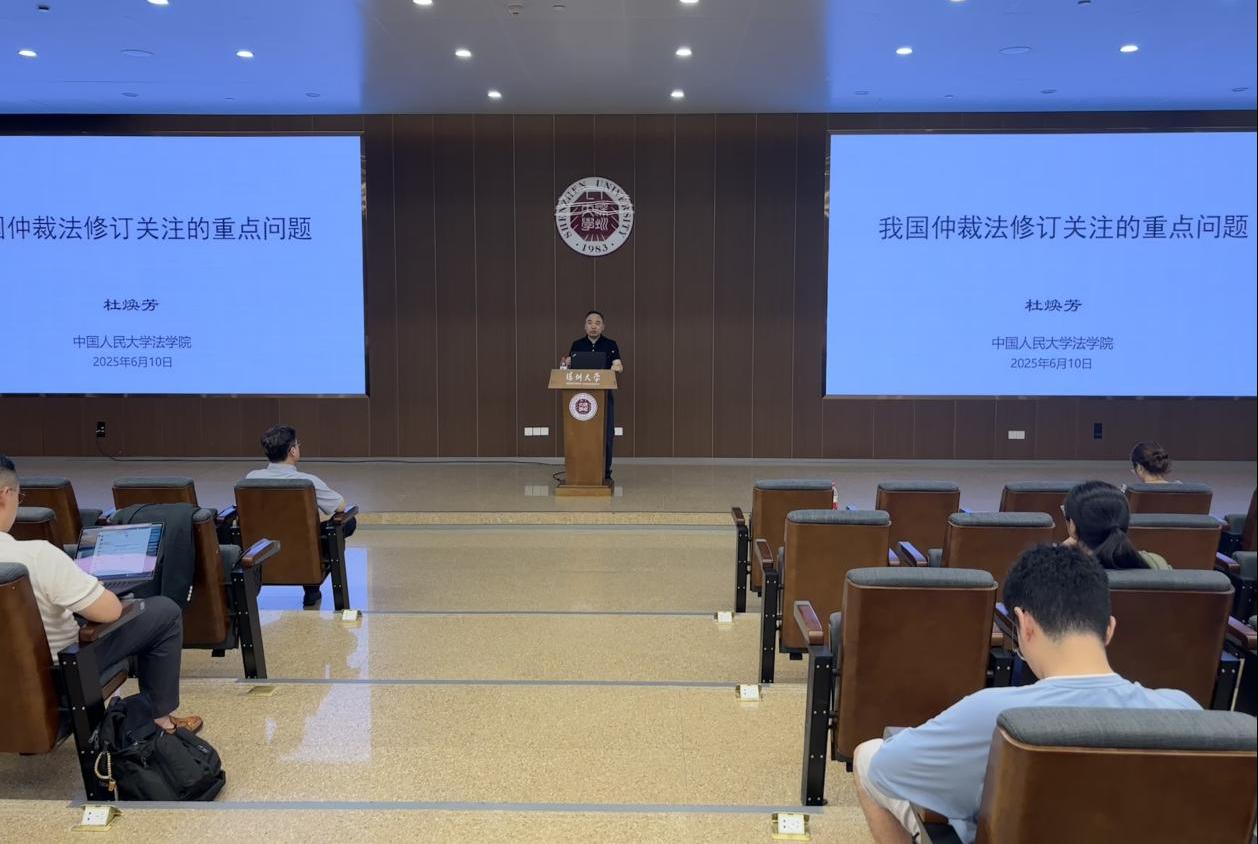 创新领航讲座“仲裁法修订关注的重点问题”成功举办2025年06月13日2025年6月10日晚,法学院创新领航讲座在深圳大学丽湖校区启明楼D101报告厅成功举行。本次讲座特邀中国人民大学吴玉章讲席教授,涉外法治研究院院长杜焕芳教授主讲,主题为“我国仲裁法修订关注的重点问题”。本次讲座由深圳... 创新领航讲座“仲裁法修订关注的重点问题”成功举办2025年06月13日2025年6月10日晚,法学院创新领航讲座在深圳大学丽湖校区启明楼D101报告厅成功举行。本次讲座特邀中国人民大学吴玉章讲席教授,涉外法治研究院院长杜焕芳教授主讲,主题为“我国仲裁法修订关注的重点问题”。本次讲座由深圳...