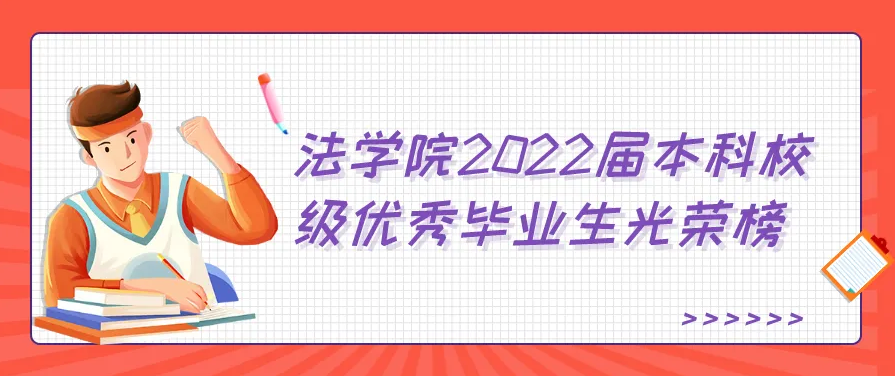深圳大学法学院2022届本科校级优秀毕业生光荣榜2022年06月09日深圳大学法学院2022届本科毕业生中,共有15名同学荣获“校级优秀毕业生”,他们在那些不与人言说的日与夜里默默耕耘,酝酿着收获的希望。让我们一同来领略优秀学子们的昂扬意气与斐然风采。